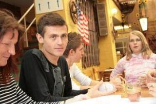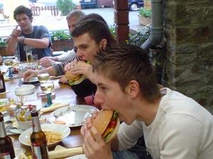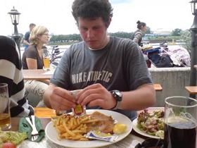 Mittagessen in der Bahnhofsgaststätte in Au. (die Begeisterung hielt sich in Grenzen)