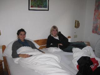 | nach dem ersten Durstlöschen, Duschen und Umziehen wurden mal wieder gegenseitig die Hotelzimmer inspiziert. |