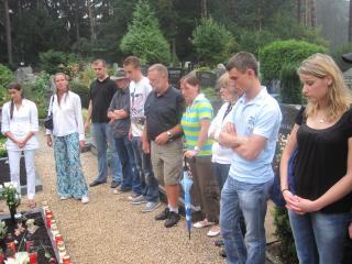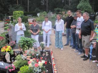 | | Bei Einbruch der Dunkelheit wanderten alle durch den Wald zum Friedhof und stellten 21 Kerzen als Gruß an Manni auf. | |
