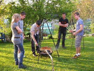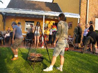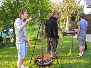 | | Dann wurden die Grills angeworfen und die Jungens konnten ihre Grillkünste unter Beweis stellen | |