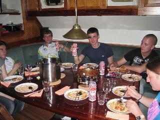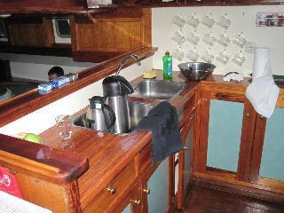 In der Bordküche wurde das Abendessen zubereitet und dann erst einmal gefuttert.