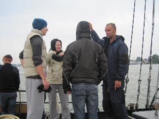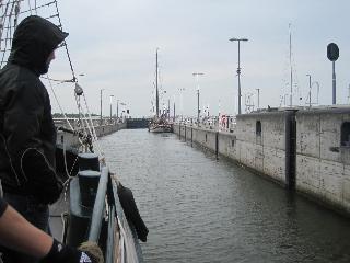 Nach dem uns der Maat Juest eine Einweisung zum Segelsetzen etc. gegeben hatte, steuerte uns Skipper Nils zielsicher zur Schleuse ins Ijselmeer.