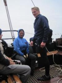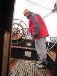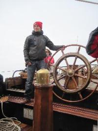 Unter vollen Segeln lag das Schiff nach Backbord über. Jonas versucht hier trotzdem Haltung zu bewahren.
