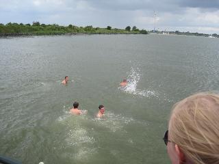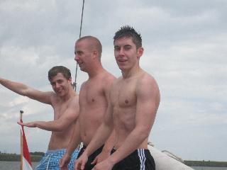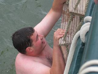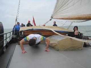 Kurz vor dem Wiedereinlaufen in den Hafen von Enkhuizen, kam die Stunde "der harten Kerle". Bei bewölktem Himmel und ca. 15 Grad Wassertemperatur brauchten sie eine Abkühlung.