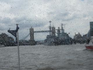 | Am Samstag haben wir dann eine Themse Cruise bis nach Greenwich gemacht. Hier kämpfen wir uns gerade bei hoher See auf die Tower Bridge zu. |