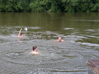 | Wieder zurück am Campingplatz gab es eine kleine Schwimmeinlage in der Mosel. |