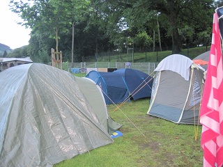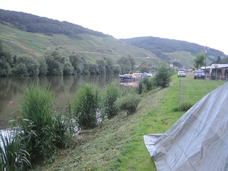 | Direkt an der Mosel schlugen wir unsere Zelte auf. |