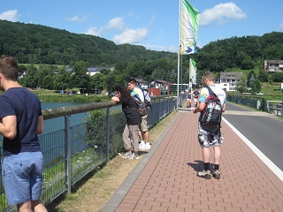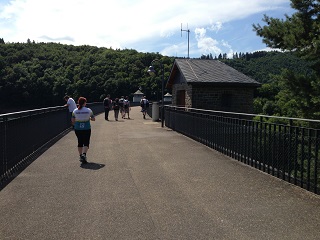 | Mittags wurde an der Urftsperrmauer gerastet. Gestärkt mit Radler, Würstchen etc. ging es dann weiter.