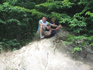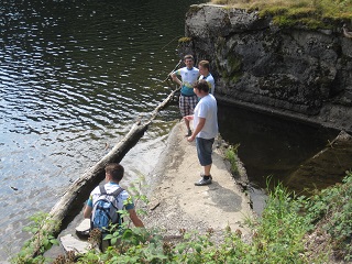 | Bei der ersten längeren Rast mußten die Jungens natürlich ein bißchen am Wasser rumspielen. |