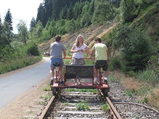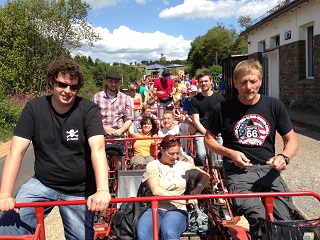 Sonntag morgen fuhren wir dann Richtung Belgien. Nach einem längeren Zwischenstop in einer urigen Biker-Kneipe mit Trinken und Karten zocken ging es zum Rail-Biken. |