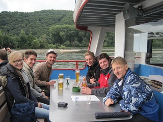 | Nach der Gepäckabgabe im Hotel ging es strammen Schrittes zum Schiffsanleger, eine Bootstour auf dem Rhein stand auf dem Programm. |