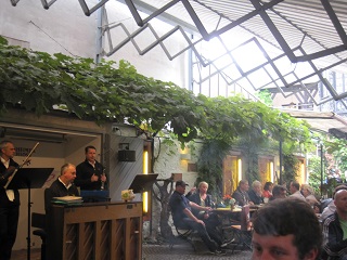 | Nach dieser anstrengenden Aktivität mußten wir uns in einem Gartenlokal wieder ordentlich stärken. |