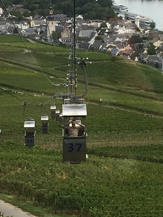 | Nach der wohlverdienten Mittagspause - außer Essen und Trinken hatten wir noch nichts getan - ging es per Seilbahn hoch zum Niederwalddenkmal |
